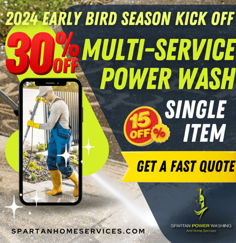 If you’re ready to give your home a fresh, clean look, Spartan Home Services is the perfect solution. With their extensive power washing services, multi-service discounts, and easy-to-get quotes, maintaining the beauty of your property has never been easier—or more affordable. Whether you need a single item cleaned or want to tackle multiple tasks at once, Spartan Home Services is here to make your home shine again. Take advantage of their special offers today and see the difference Spartan can make!